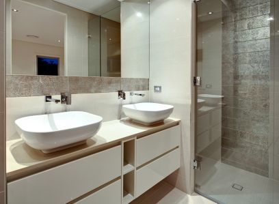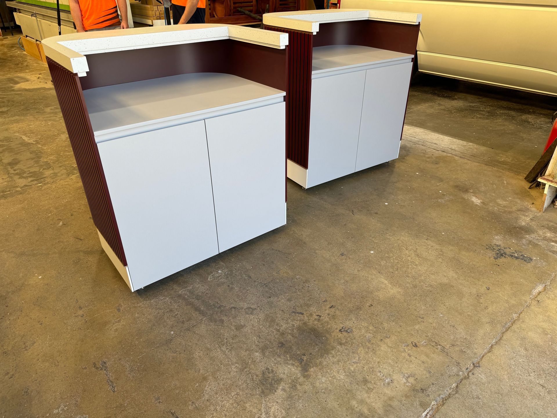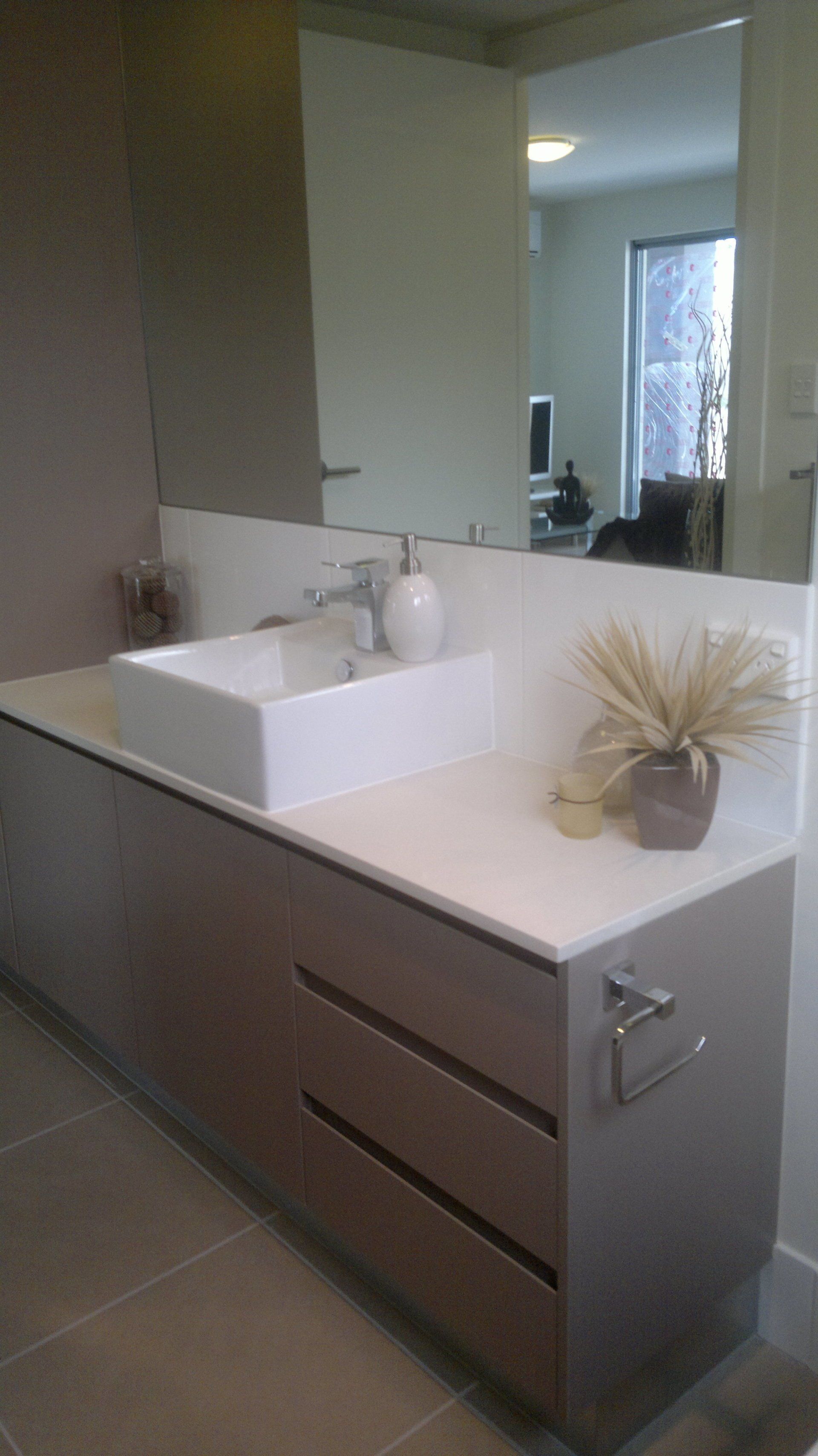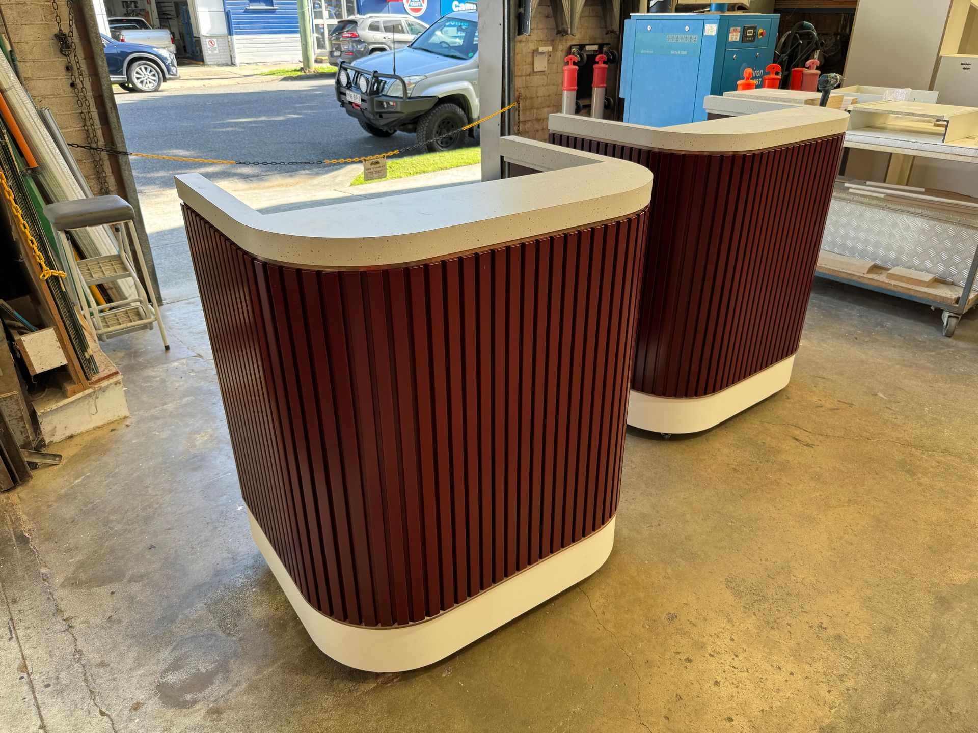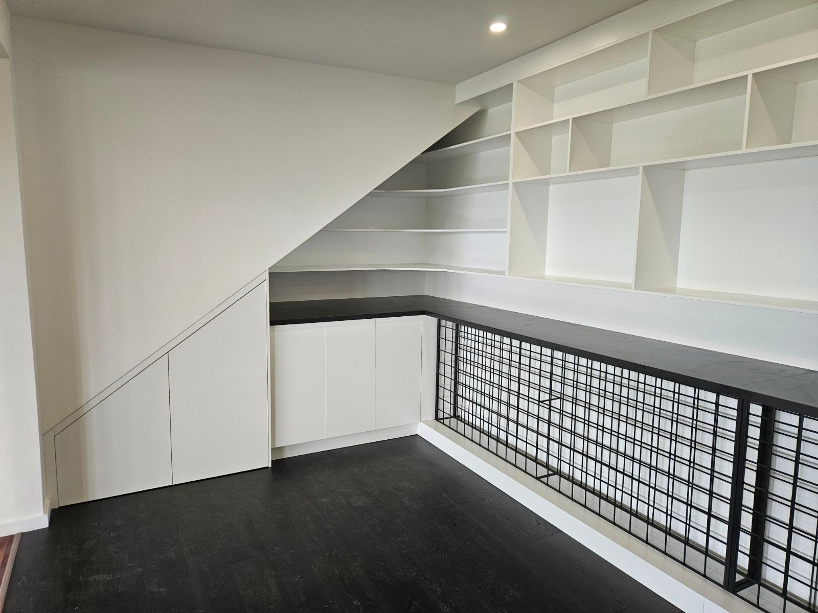 Sleek grooved VJ panels spray painted in an elegant neutral white complemented with LED lighting to showcase the workmanship.